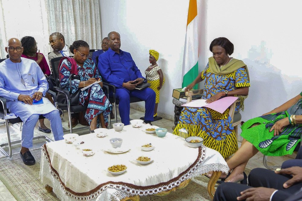 Autour d’elle, douze chefs de partis, dont Pascal Affi N’Guessan (FPI), Georges-Philippe Ezaley (PDCI-RDA) et Danièle Boni-Claverie (URD), ont pris part aux échanges avec la délégation onusienne composée de sept membres.